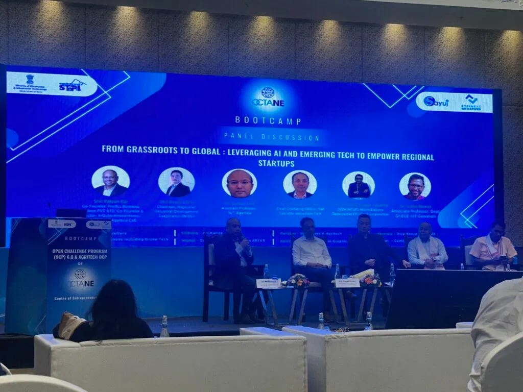 The bootcamp also featured a thought-provoking panel on “From Grassroots to Global: Leveraging AI and Emerging Tech to Empower Regional Startups,” with leaders from IIM-CIP, IIT Guwahati, and North Eastern Development Finance Corporation Ltd (NEDFi) sharing insights on scaling deeptech ventures from regional hubs.